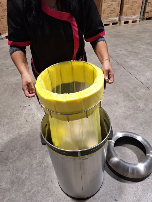 We’ve adapted the Saclò Mini system to fit perfectly inside the SimpleHuman bin—an elegant, robust container ideal for public settings like airports, stations, shopping malls, offices, and shared spaces.